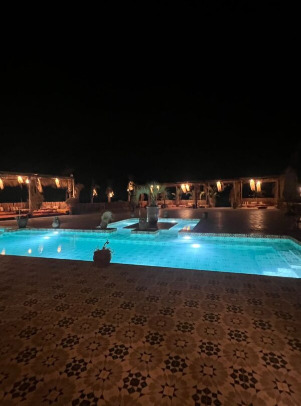 Spend an unforgettable day in the Agafay Desert with full access to a beautiful swimming pool surrounded by desert landscapes. Relax in a peaceful and elegant setting, enjoy a freshly prepared traditional Moroccan lunch, and unwind in total comfort. This day pass is perfect for couples, families, or solo travelers looking for a unique escape just outside Marrakech.