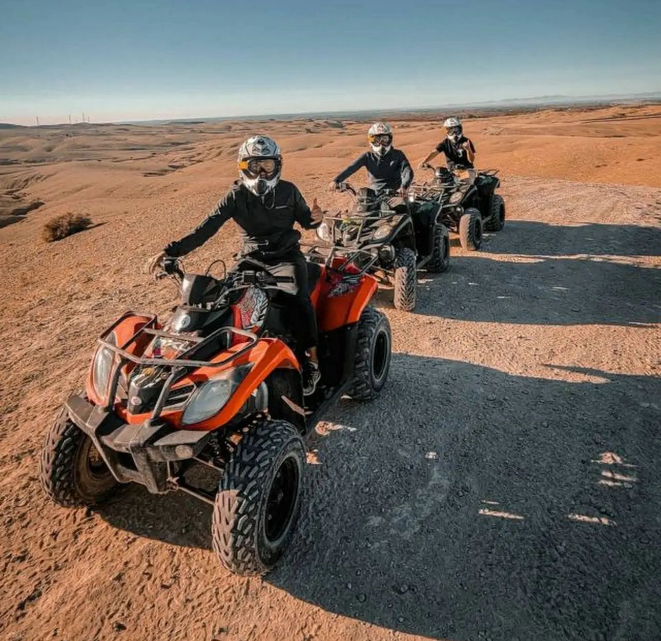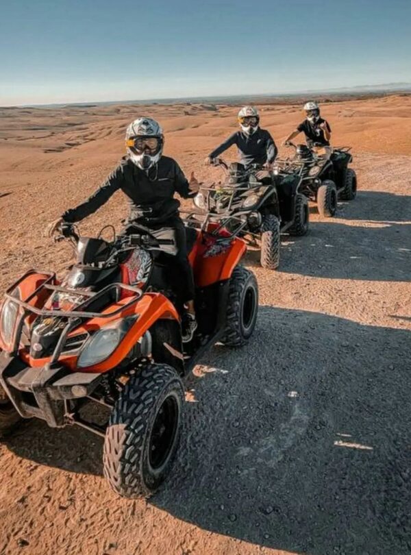 Enjoy an unforgettable 2-hour quad biking adventure in the Agafay Desert on a powerful Kymco 300cc automatic. Ride through scenic desert landscapes, take photo breaks, and stop in a traditional Berber village for mint tea. The experience includes hotel pick-up and drop-off, safety equipment, and the guidance of a professional instructor