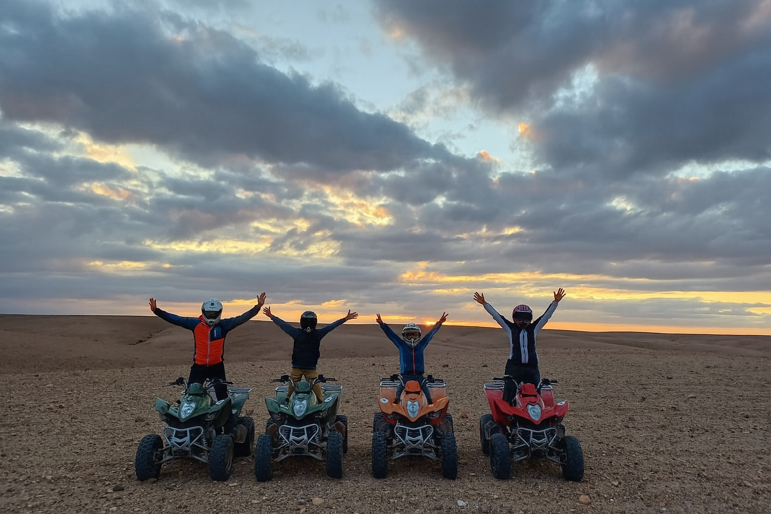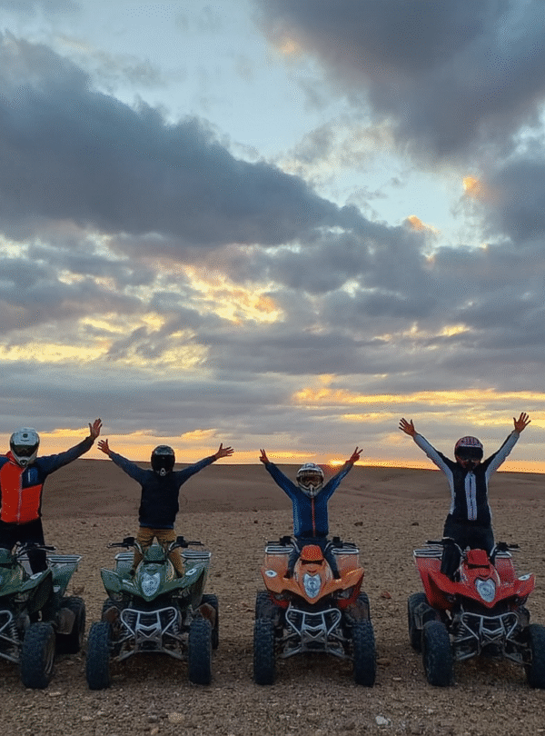Discover the magic of the Palmeraie on a powerful Kymco 300cc quad bike during a 2-hour adventure that combines excitement and scenery. Ride through palm groves, desert tracks, and traditional Berber villages while enjoying the fresh air and beautiful landscapes of Marrakechβs outskirts. This experience is perfect for thrill-seekers and nature lovers looking for an authentic off-road journey.